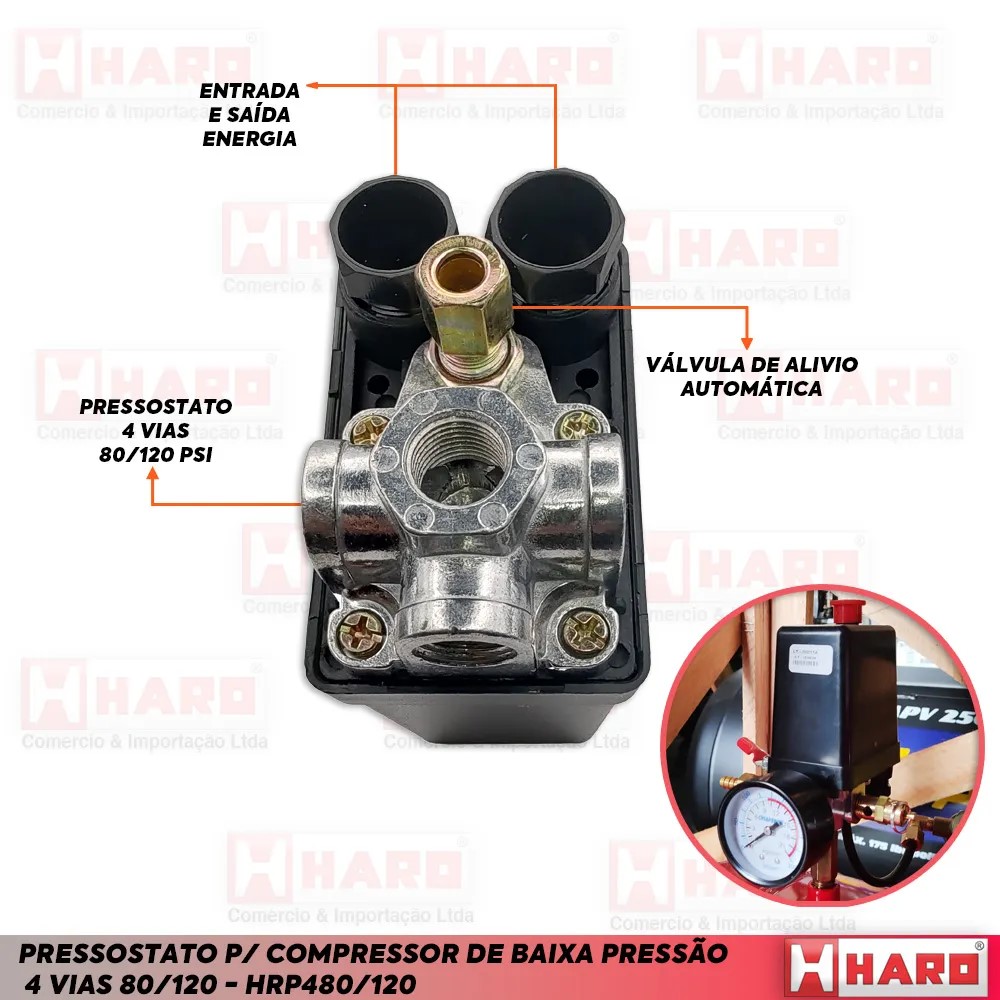 O Pressostato de Botão Automático 80/120 4 Vias é a solução ideal para quem busca eficiência e praticidade na operação de compressores de ar.